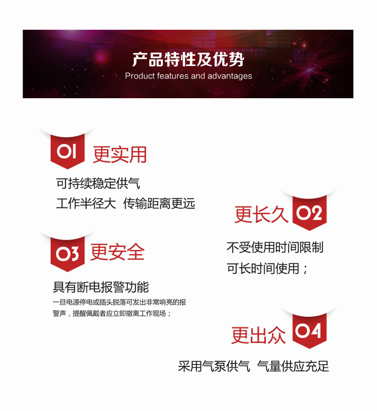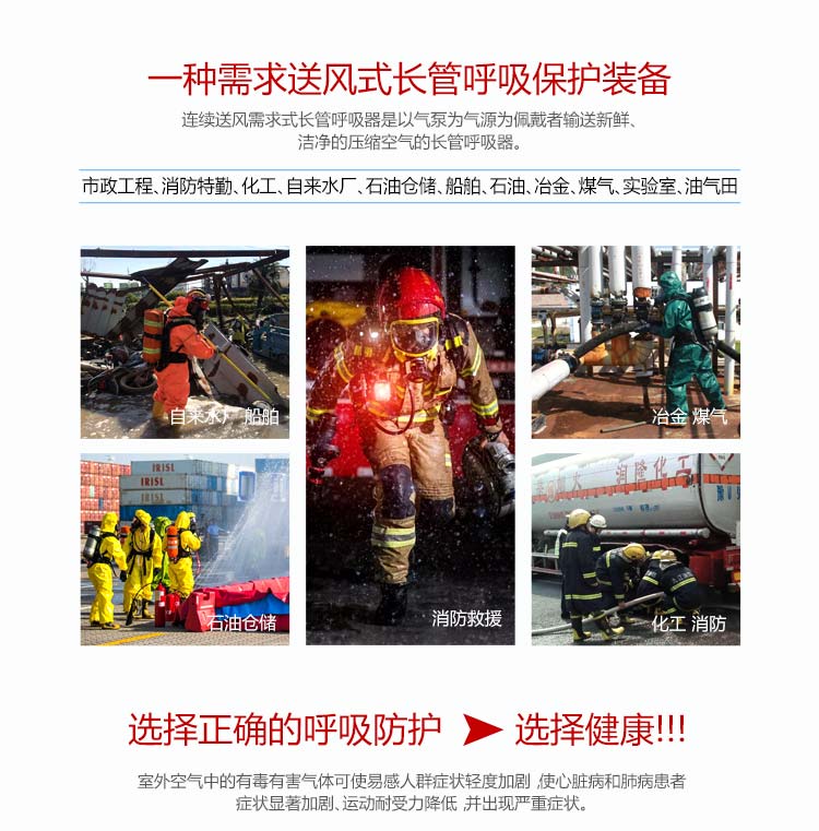 適用范圍:適合在有毒有害氣體污染環(huán)境、或缺氧窒息性災害發(fā)生時使用,例如礦山自救逃生、高層樓宇逃生等,同時也可在石油化工、隧道工程等。