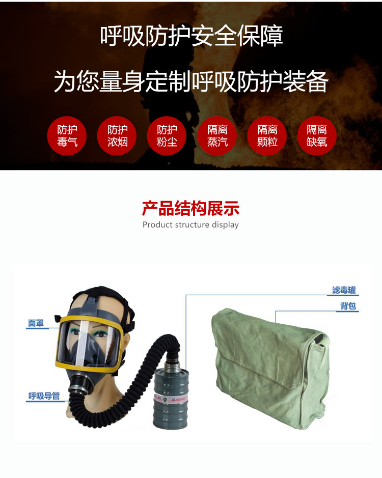 適用范圍:適合在有毒有害氣體污染環(huán)境、或缺氧窒息性災(zāi)害發(fā)生時(shí)使用,例如礦山自救逃生、高層樓宇逃生等,同時(shí)也可在石油化工、隧道工程等。